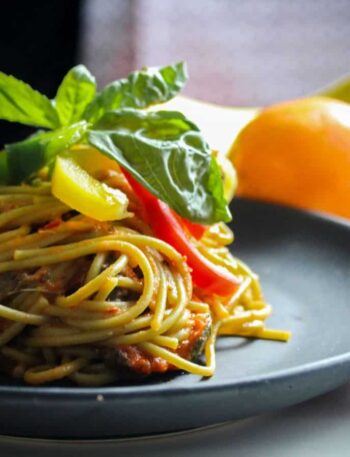 Cheese tortellini tossed in a vibrant basil pesto team up with oven roasted cherry tomatoes for a bite that’s creamy, tangy, and full of herby brightness. These make a great vegetarian option, being colorful and substantial for guests skipping the meat.